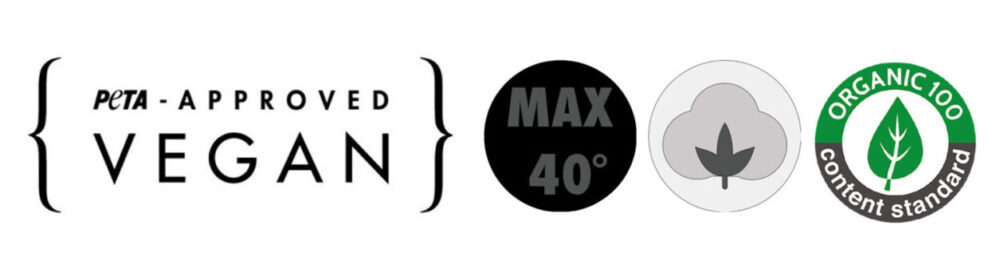 80% Cotone ring-spun organico OCS, pettinato, preristretto, 20% Poliestere riciclato RCS.