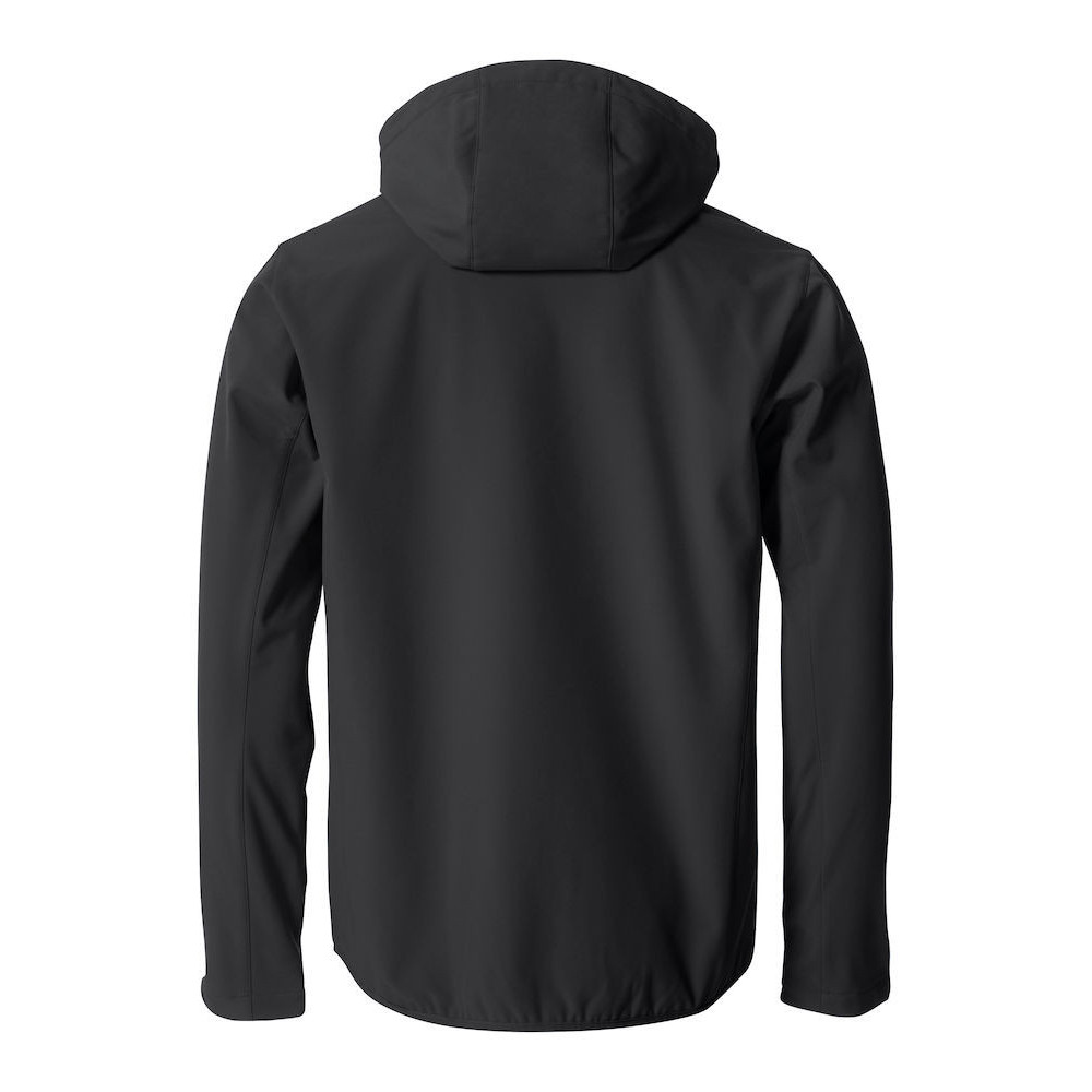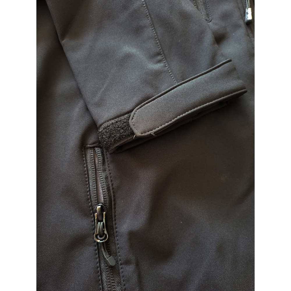 Giacca UNISEX in softshell a 3 strati, cappuccio con fermi in plastica, occhielli e cordino neri.