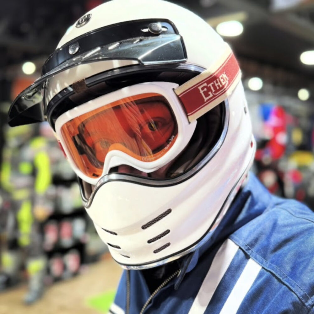 Scopri l’eccellenza della maschera da moto stile vintage modello bobber, pensata per chi cerca un accessorio che unisca design e performance. Con soli 128 grammi di peso, questa maschera garantisce leggerezza assoluta senza compromettere la protezione.