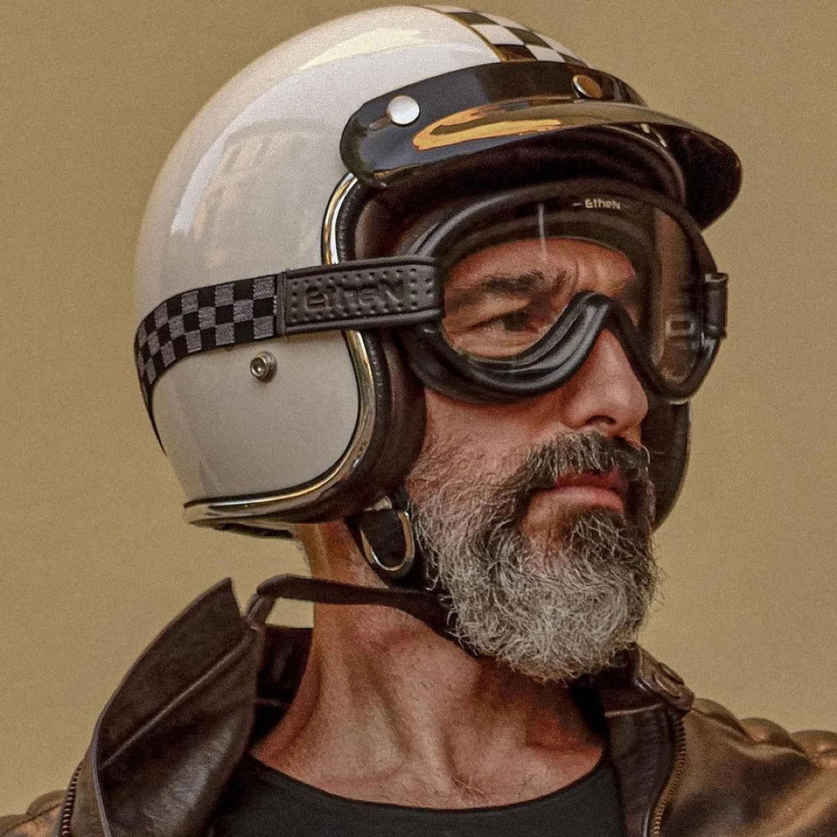 Il frame flessibile è pensato per chi pretende il massimo comfort. La banda elastica siliconata, rifinita in similpelle con logo Ethen e completamente sostituibile, eleva lo stile e la funzionalità. È proprio questa attenzione al dettaglio che rende unica la nostra maschera da moto stile vintage modello scrambler.