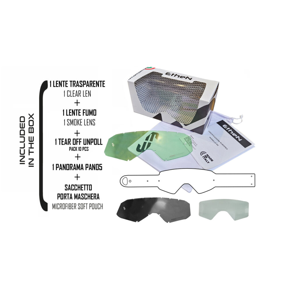 Con un peso di soli 135 grammi, questa maschera unisce leggerezza e resistenza. La lente antigraffio con trattamento antifog assicura visibilità impeccabile, mentre il pacchetto FOR RACE incluso porta l’esperienza a un livello superiore: 1 lente trasparente e 1 lente fumo di ricambio, 10 lenti a strappo UNPOLL e una pellicola protettiva a lunga durata modello Panorama05.